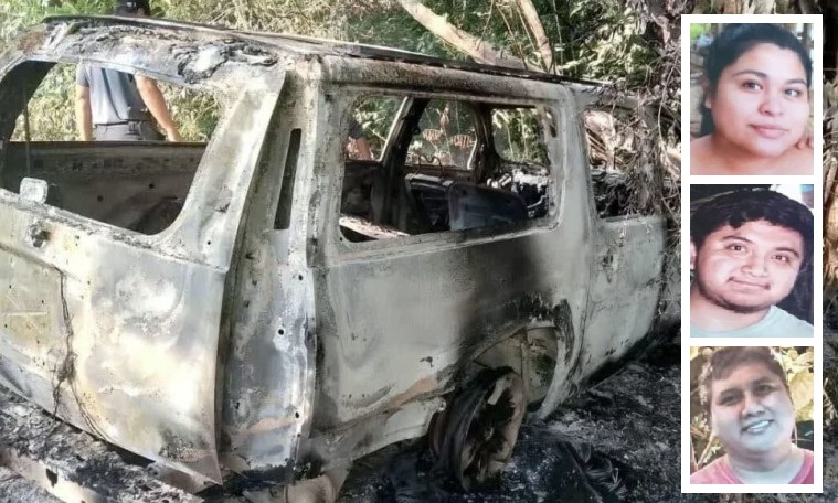 Hallan camioneta calcinada con tres cuerpos en Palenque; serían los jóvenes desaparecidos en Chiapas